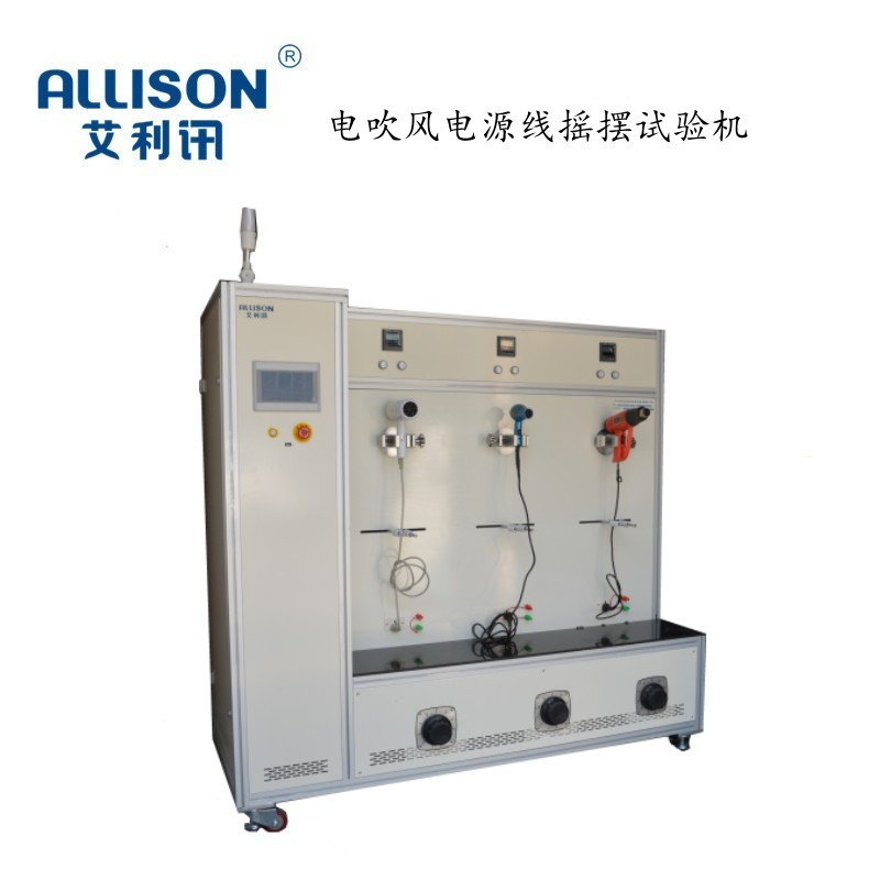整机老化试验机主要用于电吹风进行连续性、通断寿命与周期性的老化测试。通过控制系统设定,对测试产品进行电流、电压、功率、试验次数、通断时间及试验周期进行测试过程的监控与相关测试数据的记录。