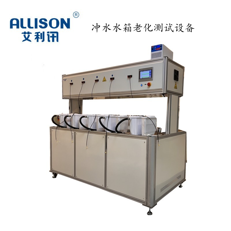 冲刷寿命耐久性测试台主要针对智能马桶/坐便器在不同的测试水的使用环境下与使用功能进行耐久性冲刷老化寿命试验。设备通用于一体式坐便器、分体式坐便器等产品。通过PLC控制与7寸触摸屏面板显示,采用相关程序控制。对马桶/坐便器进行泥沙水、配比水、恒温水等不同的测试水进行,冲水、洁净、冲洗功能老化试验、通过长时间的老化测试,对马桶/坐便器进行耐久性使用寿命综合评价。检测设备操作简单方便,相关测试数据支持USB导出。