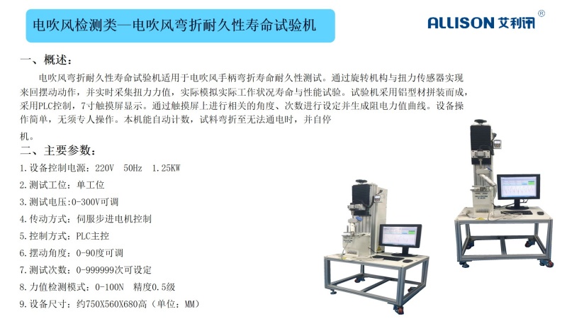 电吹风检测工装主要用于电吹风零配件进行在线检测,适用于产线快速检测与全检使用,针对电吹风半成品检测。采用双工位交替切换测试,通过切换工装实现双工位单人操作。主要检测半成品加热在烧烟工况,通过时间判断产品是否合格与不合格。并带有报警检测功能,实时判断与声光报警,合格--绿灯,不合格--红灯