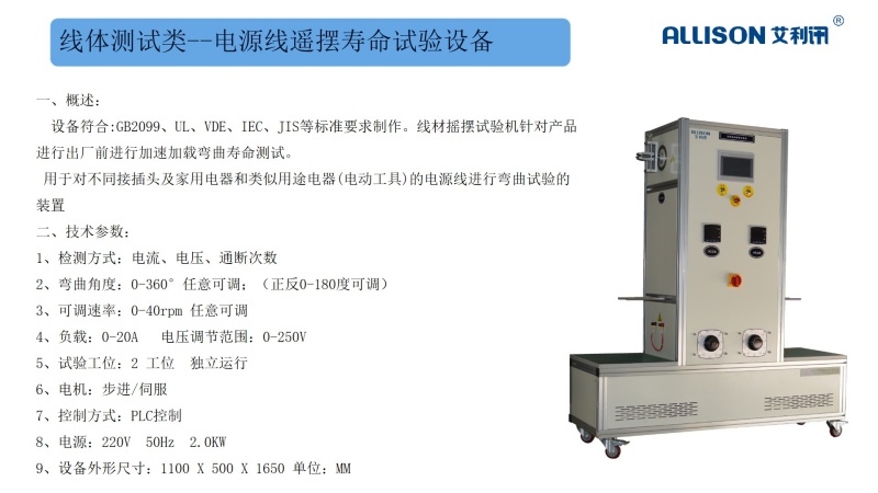 线材伸长率试验机适合于铜、铝包线各种线材及铜丝、铝丝、铝、镁合金丝、铁丝各种金属材料伸长率测试。本机采用高效率内循、环丝杆和定速电机组成的机械传动系统,带动活动夹具以定速产生左右位移,使夹紧的试件在拉力作用下逐渐伸长直至拉断,自动显示试件的伸长率百分数。本机符合UL、CSA、GB、ASTM,VDE、IEC等试验标准