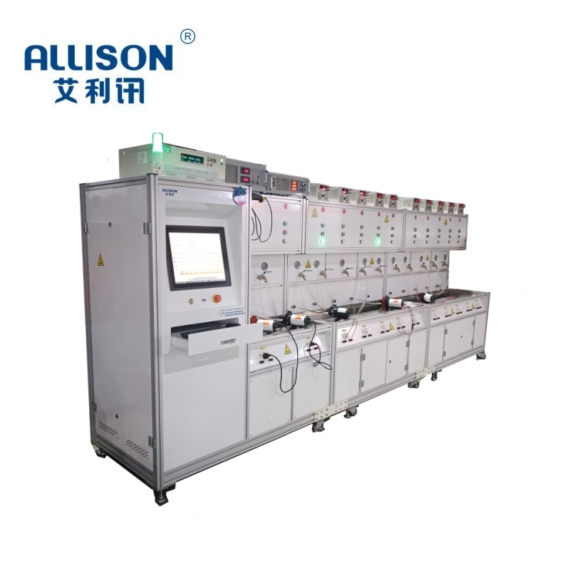 冷热交替恒压供水系统为根据客户提出要求而设定,主要适用于针对阀体类、水泵类进行冷热水交替综合能力使用工况试验。通过PID变频恒压供水,以0-2.0Mpa范围设定压力下,对所测试的阀体、泵类产品在规定的冷热水使用情况下进行5S开一次5S关一次通断寿命试验与冷热水冲击交替冲击试验。测试设备主要组成部份:中控系统、测试机架、恒压供水装置、冷热恒温控制系统,数据采集模块的组成