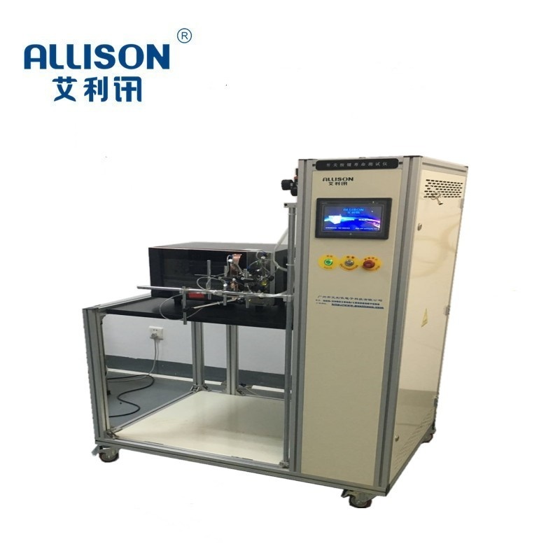 开关门试验机主要用于门体开闭耐久试验和铰链寿命测试,检测门体的质量可靠性,通用于箱柜门进行开/闭能力试验。步进电机作为驱动源,带动推杆作往复转动运动,从而完成对柜门“打开与闭合”的往复动作。通过PLC控制对产品进行上下开门测试动作,配合灵活多变的夹具,可满足多种洗衣机/电烤箱门的型式要求,通用性强,操作简单,控制方便,故障率低