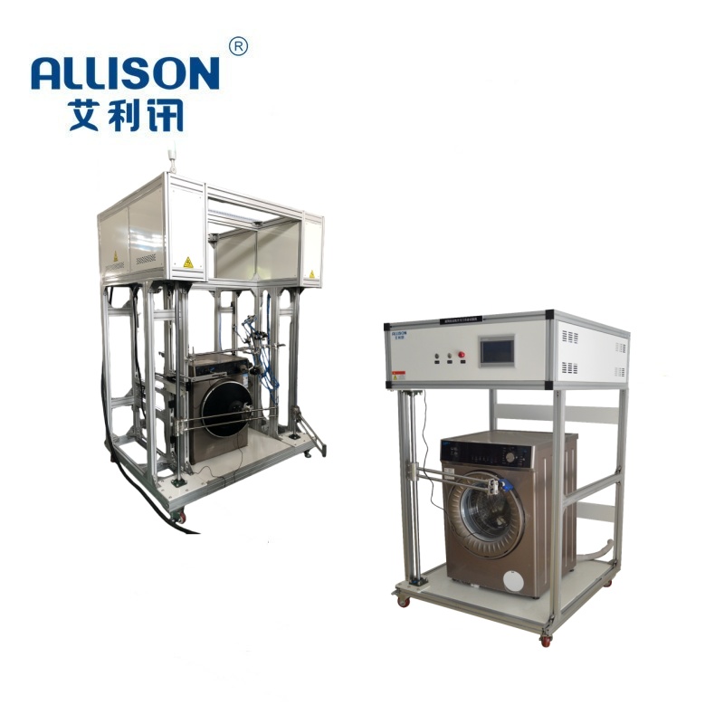 洗碗机开关门寿命试验机主要用于测试的门体与门铰链耐久性试验,检测门体的质量可靠性,适用对箱柜门体进行开/闭能力试验。以步进电机作为驱动源,带动推杆作往复转动运动,从而完成对柜门“打开与闭合”的往复动作, 通过PLC控制动作进行开启与关闭,模拟人手开关门的动作。通过PLC控制对产品进行上下开门测试动作,配合灵活多变的夹具,可满足多种洗碗机单门/双门的测试要求,试验机通用性强,操作简单,控制方便,故障率低。