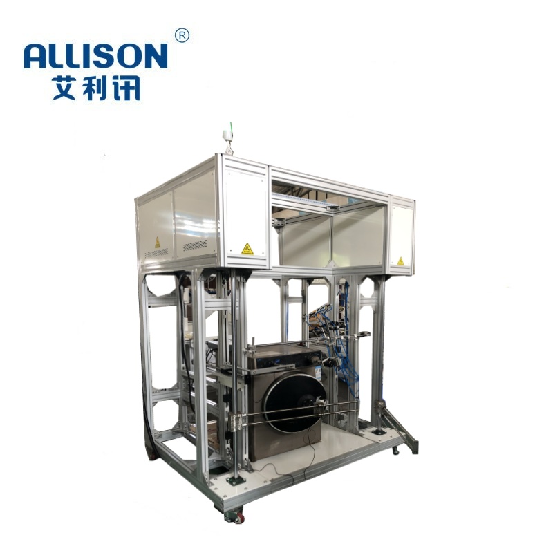 进水管脱扣寿命测试台主要用于快插式进水管脱扣耐久性试验,检测质量可靠性,适用对插式进水管进行脱扣断开/连接能力老化试验。以步进电机作为驱动源,带动夹具作插拔、脱扣运动,从而完成“打开与闭合”的往复寿命动作, 通过PLC控制,配合灵活多变的夹具,设备可满足多种洗衣机进水管脱扣寿命测试,通用性强,操作简单,控制方便,故障率低