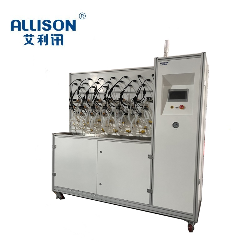 试验机采用型材与喷粉柜制作,主要用于洗衣机牵引器的长期和周期性通断寿命测试和基本性能检测,设备为40个工位,分布方式为4层,每层10工位。通过触摸屏控制,对测试产品进行长期性与周期性寿命试验。由外置电源独立供电,对各工位独立带载运行,工位上带有独立接线端口,方便对接外部电压。为防止冲击过大,工位平台具有防噪音与防振动功能。各工位负载位置加装防冲击装置,能有效降低在测试过程中带来的振动与噪音。设备外形美观。运行稳定性高。操作方便。无须专人操作。