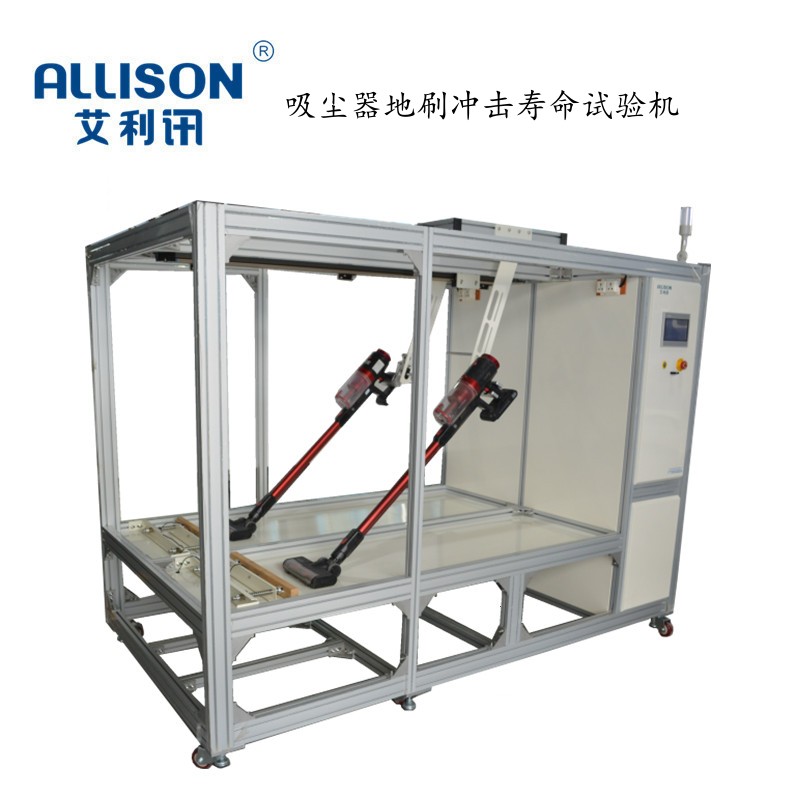 主要适用于对吸尘器地毯运动阻力测试的机械运行试验装置,试验时模拟吸尘器实际地面行走情况,测试清洁头与地毯所产生的摩擦力。在测试台面铺设地毯,使吸尘器在测试台上相对做往复行走动作,工作台能0.5m/s的速度作往复直线运动,有效恒速运行行程为700mm,总行程1200,试验机设有吸尘器专用装夹固定机构,并能对被测吸尘器进行通断式寿命测试。