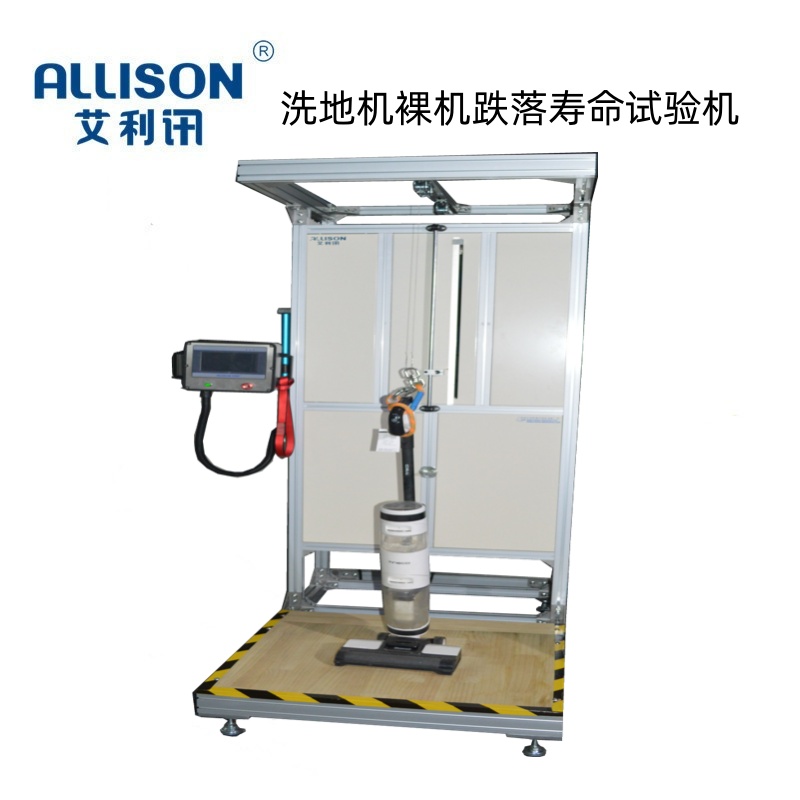洗地机裸机跌落试验机,主要用于模拟洗地机在实际使用中的提放动作耐久性寿命测试。通过竖直提拉起立式吸尘器/洗地机,由程式控制固定机构,在到达测试高度位置,瞬间释放测试产品,让所测试产品垂直自由下落至松木板上。通过不断的对测试产品进行提放动作试验,从而验证所测试的洗地机使用耐久性。试验机通用性强,操作简单,控制方便,故障率低。