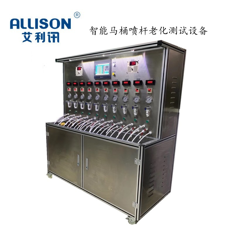 主要用于智能马桶整机高温高湿老化试验,为检测马桶/坐便器长时间在高温高湿环境下运行,从而对质量可靠性判定与检测,试验室通过PLC控制对环境温湿度进行控制与各工位产品进行电参数性检监控与试验数据记录。