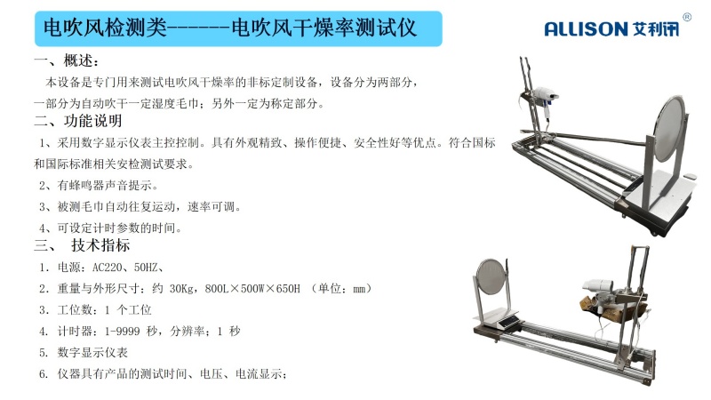 电吹风检测工装主要用于电吹风零配件进行在线检测,适用于产线快速检测与全检使用,针对电吹风半成品检测。采用双工位交替切换测试,通过切换工装实现双工位单人操作。主要检测半成品加热在烧烟工况,通过时间判断产品是否合格与不合格。并带有报警检测功能,实时判断与声光报警,合格--绿灯,不合格--红灯