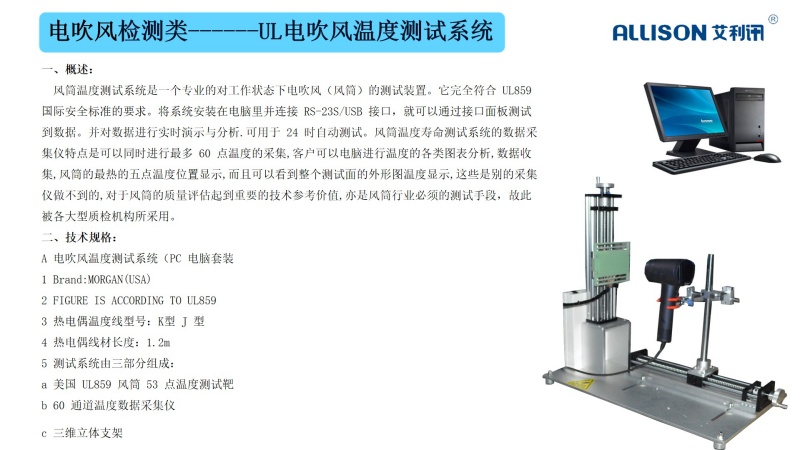 电吹风堵转检测工装主要用于电吹风整机性能检测,适用于产线快速检测设备,针对电吹风成品在风机堵转时间与温度复位时间作判断。工装为双工位单人操作。主要检测电吹风内部温控器动作与复位工况,通过时间判断产品是否合格与不合格