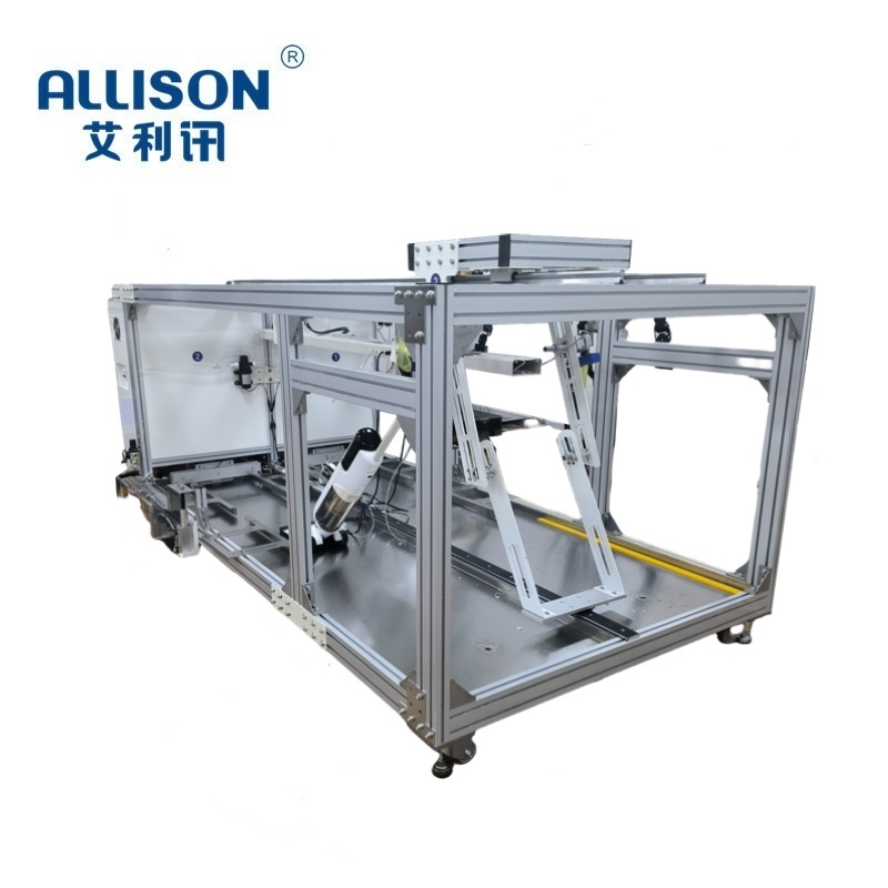 商用洗地机移动床主要适用于对洗地机移动老化测试,通过长时间的移动老化测试,判断清洁洗地机在不同的测试地面中的使用寿命试验。用户可根据不同的测试环境,在测试台面上铺设地毯、硬地板、地砖等材料。通过PLC控制与传送机构,使洗地机在测试台上相对做环形行走动作。以设定好的速度在不同的工作台面上作往复直线行走运动