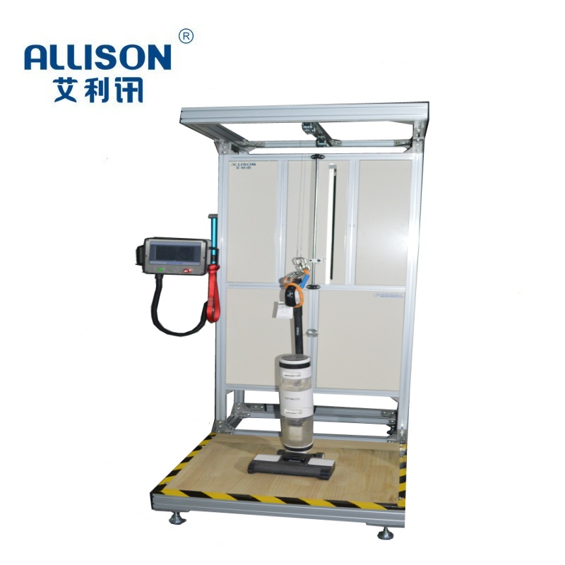 洗地机钓鱼拍打测试台主要针对于洗地机、吸尘器等家用电器产品中的手柄、地刷头、等整机零配件性综合强度耐久性寿命测试。减速电机带动相对应的夹具,对测试中的手柄进行两端夹紧固定,伺服传动机构带动整机产品进行拍打测试。测试台采用PLC程式控制并通过7寸触摸屏进行相关参数设定与记录。设备采用铝型材拼装而成。喷粉钣金外拼装,美观大方。具有运行稳定,操作方便等优势