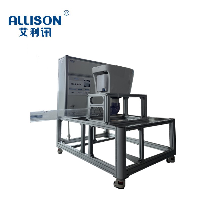 主要用于检测坐便器组件耐水压密封性测试与防水击性能检测。测试机采用日本三菱 PLC 控制与7 寸触摸屏显示,控制系统通过程序自动控制,实现压力控制,系统自动产生所需标准压力,通过压力传感器与铜管装置实现产品在设定好的水压压力下进行密封性检测与防水击检测。设备具有自动采集、数据记录等,并可通过 USB 导出与打印相关测试内容。适用范围:实验测试/生产线上检测等密封性测试与产品耐久性分析