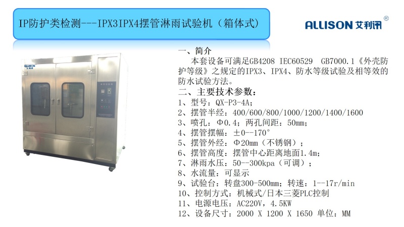 IP防水等级试验机是根据GB4208-2008<<外壳防护等级(IP代码 )>>标准要求设计制造.该设备广泛用于灯具及电工电子、军工产品,认证检测机构及生产企业品管部门对产品的IPX7、IPX8的防水等级检测