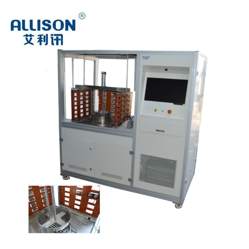 控制器通额定电压,最大工作电流(偏差士5%),在试验炉内升、降温使触头开启、闭合动作,最大动作频率6次/min,闭合时间1s以上,每开、闭一次作为一个周期,记录周期次数,使用气缸对温控器进行复位