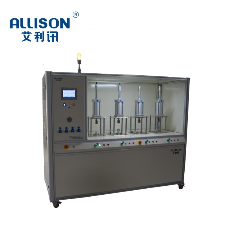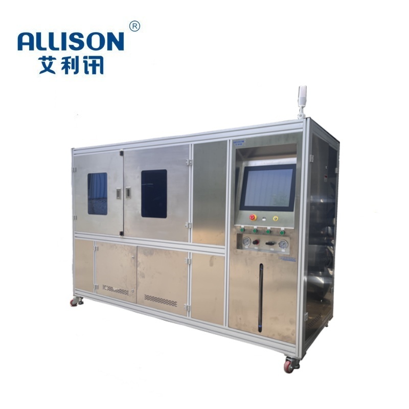3.试验机采用人体工学设计,上翻式防爆门。内部设有LED灯光与开门自动停机功能。试验门采用网格式防爆门设计,工作平台为304不诱钢水盘。能有效的防锈与测试液体回收。设备操作采用自主研发系统,具有操作简单,无须专人操作。