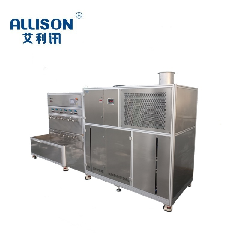 零配件耐压密封性/流量测试设备,以高压水源作为恒压主动力测试源,压力变送器与高精密流量传感器对所检测产品进行高压性密封性检测与流量特性测试;测试供水采用恒温机组作测试水温恒定,以5-60度可设定的测试水温进行对测试样品恒定输出。测试台采用PLC主控,7寸触摸屏中文显示;通过压力变化差与所产生的压力与恒定压力输出的流量进行上下限判定。夹具根据客户提供产品设计对多样化产品最高达到90%以上的通用性夹具。OK自动进入下一步检测,NG对应指示灯亮,并声光报警;检测设备所用配件采用进口及国内知名品牌,工作稳定可靠。操作简单方便,相关测试数据支持USB导出。